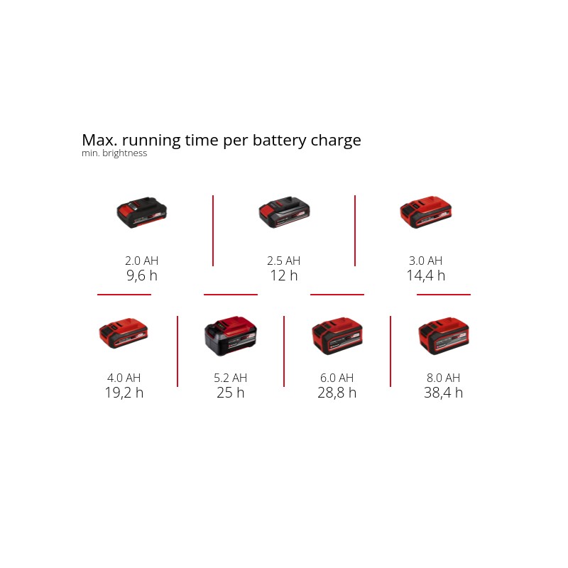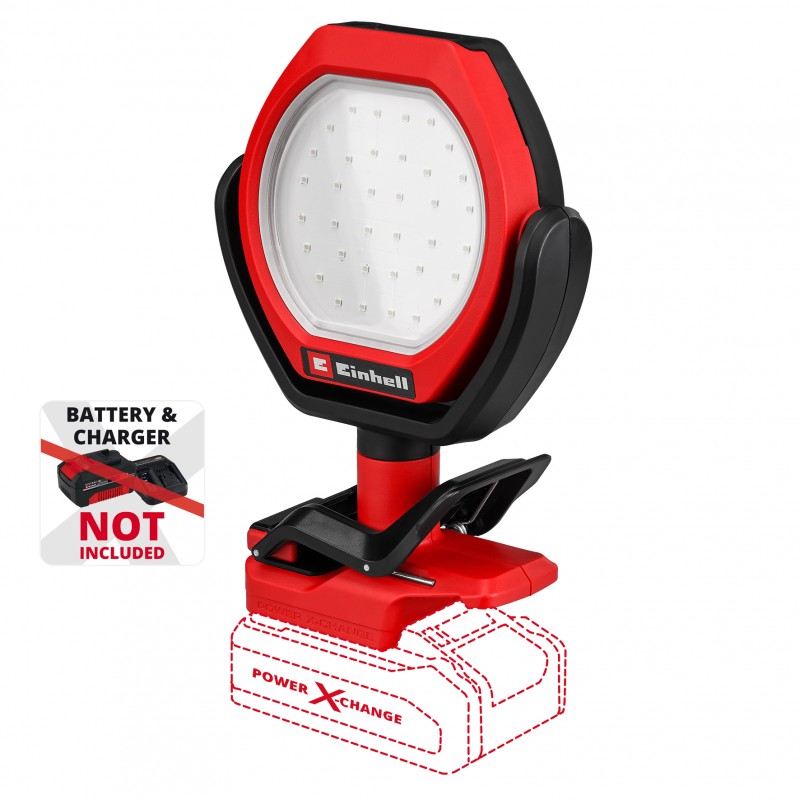 Einhell bežična vanjska svjetiljka GC-OL 18/1500 Li-Solo unosi svjetlo u tamu – bilo u vrtu, radionici ili čak na kampiranju. Snažna litij-ionska baterija iz inovativne obitelji Power X-Change osigurava optimalnu svjetlinu za unutarnju i vanjsku upotrebu. Njegovih 36 jarkih LED dioda proizvode hladno bijelo svjetlo od 7000 K i svjetlinu do 1500 lumena, koja se može podesiti u 3 razine pritiskom na gumb. Maksimalni domet snopa je 4 m. Za maksimalnu fleksibilnost, glava svjetla promjera 11 cm može se horizontalno rotirati lijevo i desno do 290° i vertikalno zakretati do 300° naprijed i natrag. Gumirana i neklizajuća kopča omogućuje razne mogućnosti pričvršćivanja na stolove, police ili čak šipke šatora. Kompaktna svjetiljka na baterije može se lako prenositi pomoću integrirane ručke za nošenje. B. može se koristiti kao svjetiljka. Einhell bežična vanjska svjetiljka GC-OL 18/1500 Li-Solo isporučuje se bez baterije i punjača. Dostupni su zasebno.