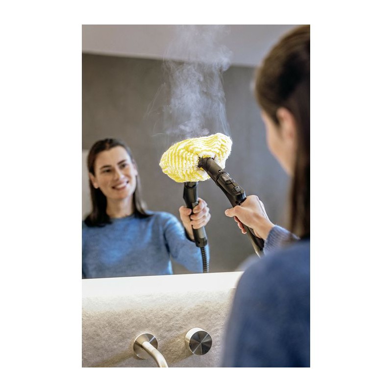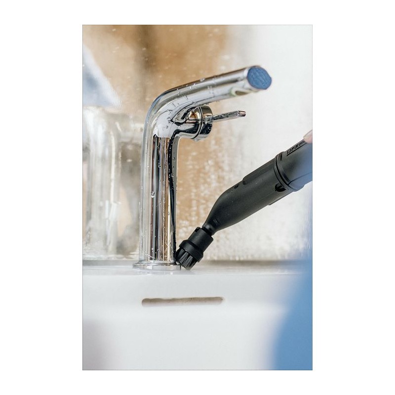 Čišćenje i peglanje? Punom parom naprijed! Nema problema za Kärcher SC 5 EasyFix. To je zato što najsnažniji parni čistač u svojoj klasi (tlak pare od 4,2 bara) također dolazi s mogućnošću povezivanja za glačalo pod pritiskom. Temeljito čišćenje s Kärcher parnim čistačem uklanja 99,999% virusa* i 99,99% svih uobičajenih kućanskih bakterija** s tipičnih kućanskih tvrdih površina. Korištenjem raznih dodataka, pločice, ploče za kuhanje, nape i čak i najmanji otvori postat će besprijekorno čisti, bilo da se radi o laganoj ili tvrdokornoj prljavštini. EasyFix podna mlaznica s fleksibilnim spojem omogućuje ergonomski rad. A tehnologija lamela jamči savršene rezultate čišćenja. Krpa za čišćenje poda može se jednostavno pričvrstiti na podnu mlaznicu i ponovno ukloniti bez potrebe da dođe u dodir s prljavštinom. Funkcija VapoHydro još lakše uklanja tvrdokornu prljavštinu dodavanjem tople vode. Intenzitet pare se može prilagoditi površini i prljavštini. Odvojivi spremnik za vodu može se stalno puniti – za nesmetano čišćenje. Dodatni dodaci: integrirani pretinac za odlaganje kabela, pretinac za odlaganje pribora, parkirno mjesto za podnu mlaznicu.