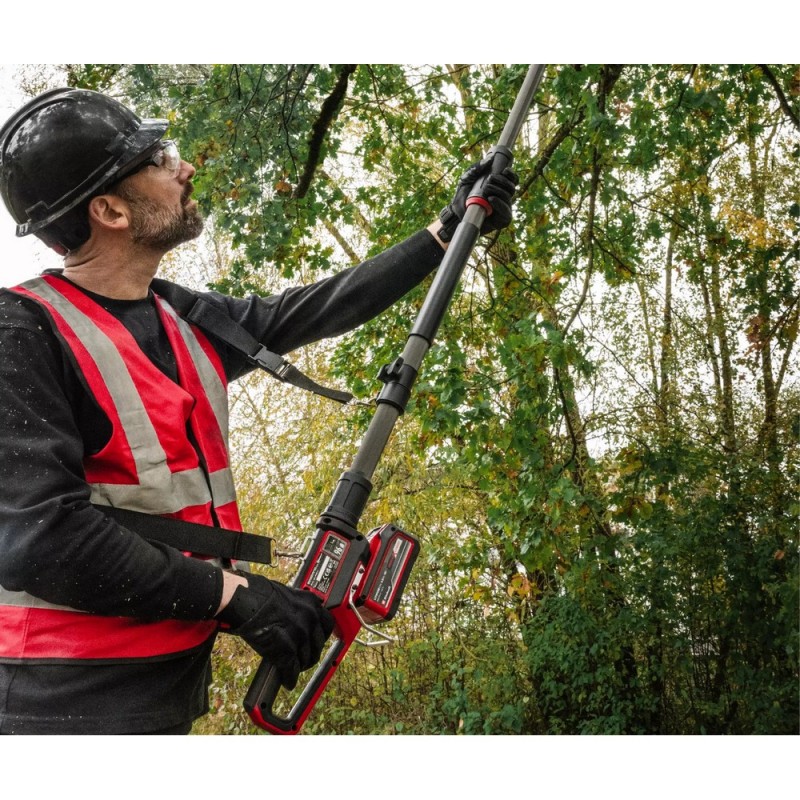 Einhell Professional akumulatorska teleskopska pila za grane GP-LC 18/20 Li T BL-Solo pouzdan je pomagač za redovito orezivanje drveća. Dio je Power X‑Change obitelji i kompatibilna je sa svim baterijama i punjačima iz iste serije. Alat pokreće Einhell-ov motor bez četkica koji pruža veću snagu i dulje vrijeme rada u odnosu na klasične motore s četkicama.