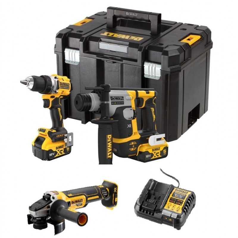 DCK355P2T set aku alata dolazi s snagom u kompaktnom paketu: bušilica-odvijač (DCD800), kutna brusilica (DCG405) i SDS-Plus bušilica-čekič (DCH172), uz dvije 5Ah baterije, brzi punjač i TSTAK kofer. Ovakav komplet štedi vrijeme jer pokriva širok spektar uobičajenih zadataka — od rezanja, brušenja i pričvršćivanja do bušenja u zidne materijale — bez stalne izmjene alata. Brushless motori i XR platforma osiguravaju da alati drže snagu i bez pregrijavanja, dok uravnoteženi hvat i postavke olakšavaju kontrolu i smanjuju umor.