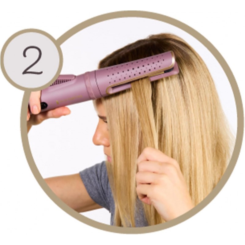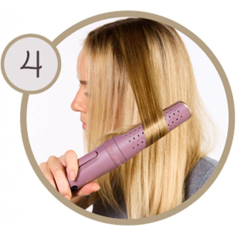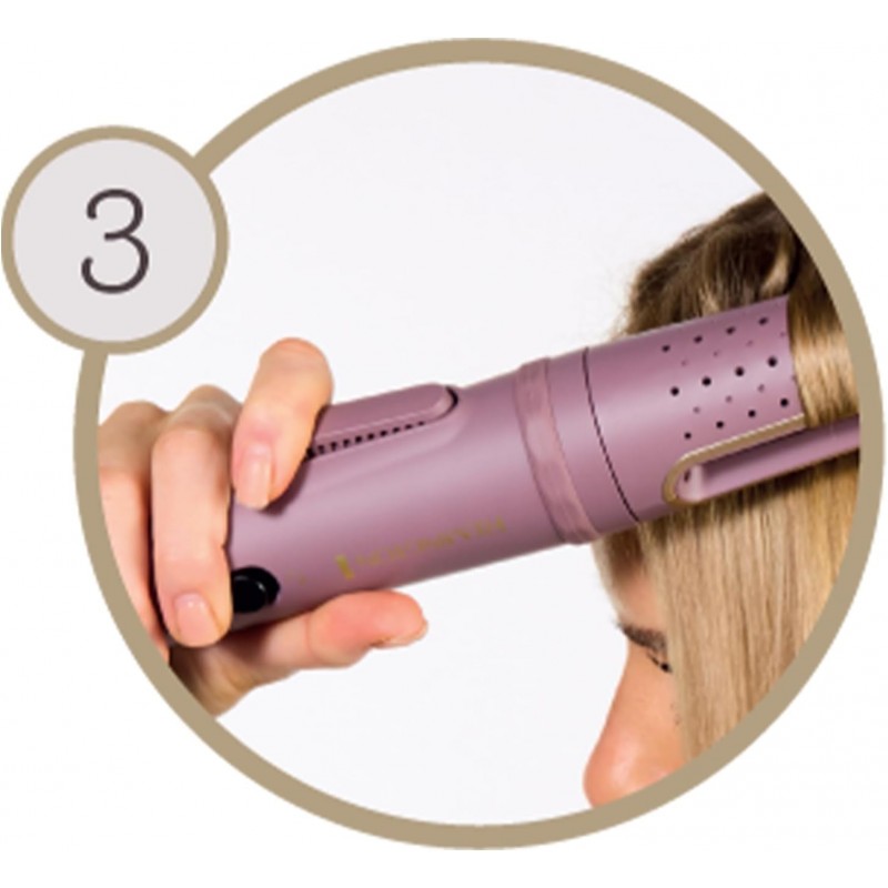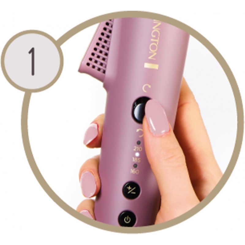 Jednostavno definirajte svoje kovrče s rotirajućim uređajem za uvijanje REMINGTON® AIRvive™. Nježna Ionic Air tehnologija protiv statičkog elektriciteta trenutačno hladi kosu kako bi zadržala oblik kovrče, dok ultra glatke keramičke ploče za oblikovanje, ispunjene mikro regeneratorom kojeg aktivira toplina, omogućuju glatkoću kovrči i cjelodnevno uživanje u kosi bez stršećih vlasi¹. Rotirajuća cijev s utorom za kosu i rotacijskom polugom koja se lagano koristi znači da više ne morate uvijati svoj ručni zglob. Jednostavno umetnite odabrani pramen kose, pritisnite polugu i polako klizite preko kose, uvijajući svaki uvojak odabirom smjera uvijanja za postizanje prirodnih rezultata. Uz aktivno hlađenu cijev i 3 digitalne postavke topline, od 160 °C do 210 °C ), imate potpunu kontrolu, tako da možete odabrati pravu temperaturu rada za svoju kosu i postići željeni rezultat. Upotrijebite nižu temperaturu rada za labavije kovrče ili pojačajte toplinu za čvršće, definiranije kovrče. Ultra glatki sloj keramike na pločama za oblikovanje sadrži 10 puta više keramike², kako bi uređaj lako klizio preko kose, bez čupanja, a napredni sustav grijanja precizno i ravnomjerno raspoređuje toplinu, tako da možete postići rezultate u jednom potezu³ i uz manje izlaganja toplini⁴.