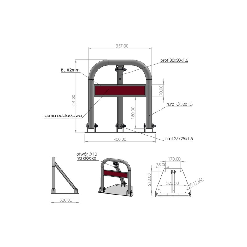 Sklopiva parkirna rampa "potkova" za učinkovitu zaštitu prostora od neovlaštenog ulaska ili parkiranja vozila. Omogućuje vam da privremeno blokirate parkirna mjesta ili ulaze, kao što su privatni posjedi, zelene površine, šetališta.
