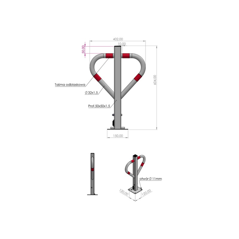 Sklopiva parkirna rampa "leptir" s bravom za učinkovito osiguranje prostora od neovlaštenog ulaska ili parkiranja vozila. Omogućuje vam da privremeno blokirate parkirna mjesta ili ulaz, kao što su privatni posjedi, zelene površine, nasipi, šetališta.