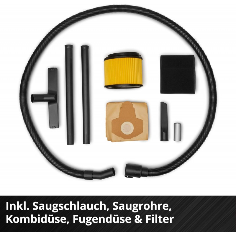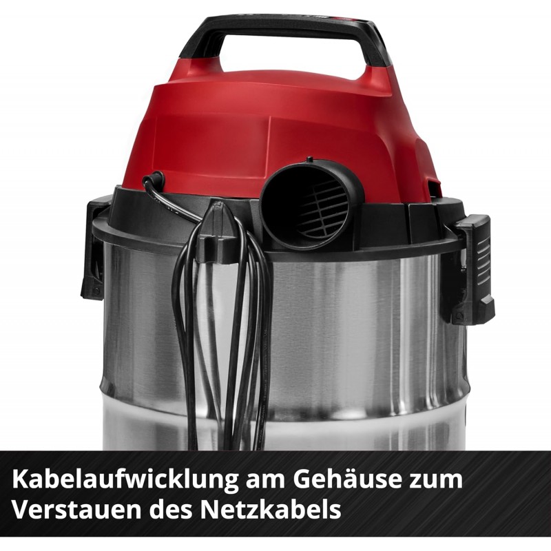 Snažan mokro-suhi usisavač Einhell TC-VC 3055 S savršeno je prilagođen temeljitom čišćenju u domu, radionici i garaži. S potrošnjom energije od 950 W i usisnom snagom od 190 mbara, pouzdano uklanja prašinu, prljavštinu i tekućine s raznih površina. Pomoću priključka za puhanje, čak se i teško dostupna mjesta i uski prostori mogu bez napora očistiti ispuhivanjem otpadaka. Usisavač ima robusnu, nehrđajuću posudu od nehrđajućeg čelika volumena 30 litara. Plastično usisno crijevo duljine 2,5 m (Ø 36 mm) i dvodijelna plastična usisna cijev osiguravaju visok protok zraka i veliki raspon kretanja. Ovaj radni radijus može se proširiti do 5,5 m za još veću slobodu kretanja s kabelom za napajanje od 3 m. Za praktično spremanje, kabel za napajanje može se namotati na integrirani držač kabela usisavača. Zahvaljujući četiri čvrsta kotača i integriranoj ručki za nošenje, mokro-suhi usisavač je mobilan i jednostavan za transport. Usisavač dolazi opremljen uskim nastavkom za čišćenje uskih prostora i velikim kombiniranim nastavkom za tepihe i glatke podove. Osim toga, u isporuci su i pjenasti filter za mokro čišćenje, papirnata vrećica za skupljanje prljavštine i naborani filter za suho usisavanje. Ovaj usisavač je pouzdan i svestran alat za rješavanje raznih zadataka čišćenja, kombinirajući snagu, mobilnost i praktičnost u jednom učinkovitom uređaju.