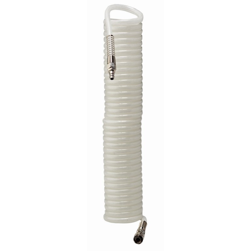 Zahvaljujući duljini od 10 metara, spiralno crijevo pruža širok radni raspon oko kompresora, što ga čini savršenim za upotrebu u radionicama i prilikom korištenja alata koji troše više zraka. Maksimalni radni tlak od 15 bara osigurava pouzdano napajanje i za najzahtjevnije zadatke.
