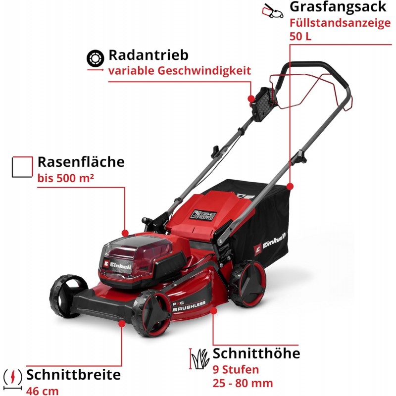 Einhell PXC GC-CM 36/46 S Li BL (2x 4.0Ah), akumulatorska samohodna kosilica u setu